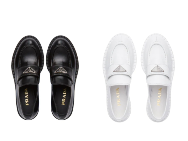 既然說起今年最流行的皮鞋,肯定少不了厚底的PRADA皮鞋。以經典Penny Loafer為靈感,可愛典雅的圓弧鞋頭搭配率性中性的橡膠厚底,既能修飾腿型又能駕馭任何風格的穿搭。最大的亮點還是鞋面綴有品牌的搪瓷金屬三角形標誌,俐落有型。