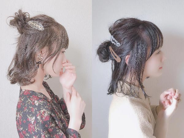 只需要以耳朵上方為界線,拉上半部的頭髮綁起來即可,想製造一點小巧斯也可以先從上半部頭頂抓一部份頭髮綁起,接著將兩側頭髮捲成麻花捲然後綁在一起,這樣看起來很有日系小姐姐的感覺~甚至直接在中間夾個大夾子上去也行!