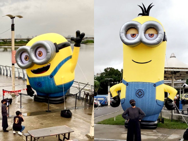 如果想要找台北能約會看夕陽、吃點小吃美食的地方,那夜晚的大稻埕配上貨櫃市集,就是非常不錯的選擇!現在又有加入新驚喜,小小兵可愛的兩大主角Bob、Kevin直接出現在碼頭邊陪大家,放大成5-7公尺陪伴大家,超級萌!Bob還揮手和大家打招呼,小朋友一定會很喜歡吧!