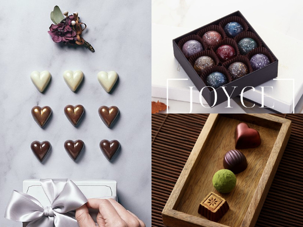 「JOYCE」職人手工巧克力,特別使用食材原料,提供多樣比例%數的巧克力製品,不論是生巧克力、造型巧克力、星球巧克力,都能吃到巧克力不同的風味。加上精緻禮盒,是情人節送禮的選擇之一!
