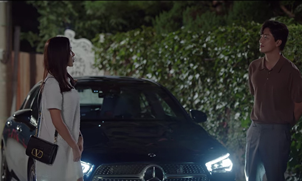 劇中也有選用比利時品牌Delvaux的Tempete系列,並以藍色條紋襯衫、白色牛仔褲的休閒穿搭,搭配天藍色的Tempete手袋。之後也有背上較大尺寸的淺奶茶色款,打造另一種風格的穿搭。此款包款延續1967年的原始包型,標誌性的金屬飾釘添加活潑氣質,是Delvaux最具代表性的包款之一。