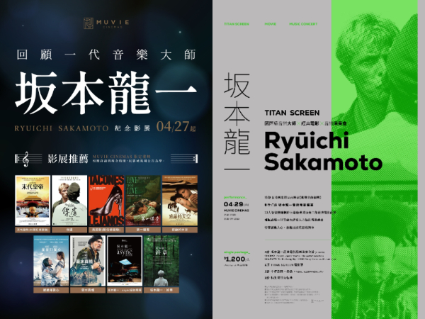4 月 29 日在 MUVIE CINEMAS 將舉行【坂本龍一:國際級音樂大師x經典電影x 音樂演奏會】限定特別場,特邀台灣樂壇頂尖音樂家【風動室內樂團】,聯手打造坂本龍一音樂電影盛宴,由 23 人管樂團編制於 TITAN 巨幕廳現場演奏《末代皇帝》、《遮蔽的天空》、《俘虜》3 部經典電影配樂,細膩詮釋一代音樂大師扣人心弦的傳奇樂曲,帶來撼動人心、激起漣漪的靈魂詩章。