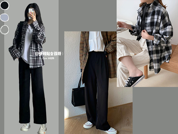 單品快速入手👉百搭高腰顯瘦垂墜休閒褲/經典百搭格紋襯衫外套