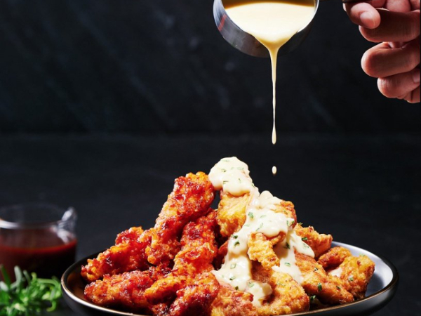 搭配的兩款醬料也是經典的韓式醬料,「韓式甘醬」的酸甜與「蒜香起司」的鹹香,讓你鹹甜自由變換,不容易吃膩!