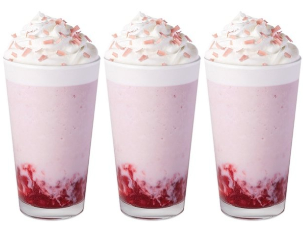 香甜的草莓果粒混入融合草莓果醬的星冰樂,擠上滿滿的鮮奶油後,撒上如點點落櫻的粉紅巧克力碎片,看起來超有春天的味道!酸甜的滋味,讓你每一口都大滿足~